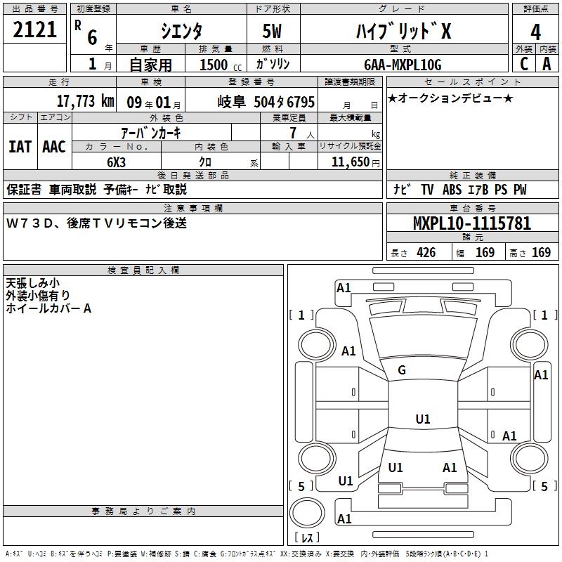 TOYOTA SIENTA HYBRID X - лот 2121