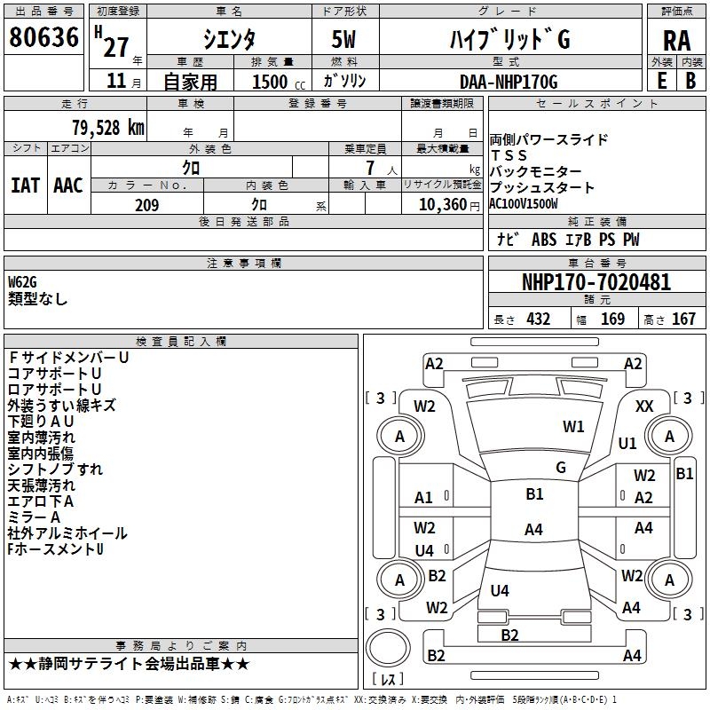 TOYOTA SIENTA HYBRID G - лот 80636