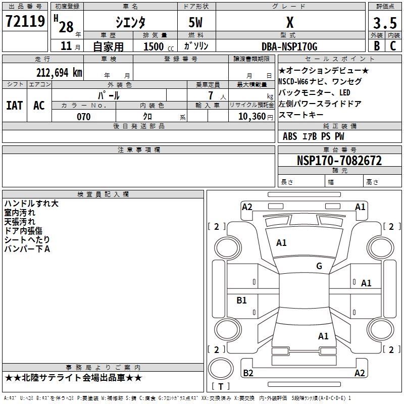 TOYOTA SIENTA X - лот 72119