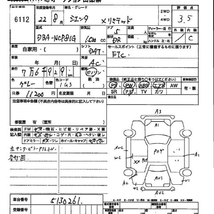 TOYOTA SIENTA X LIMITED - лот 6112
