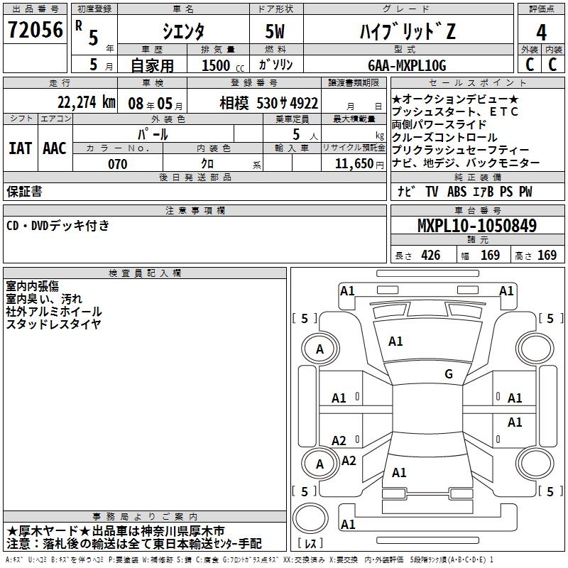 TOYOTA SIENTA HYBRID Z - лот 72056