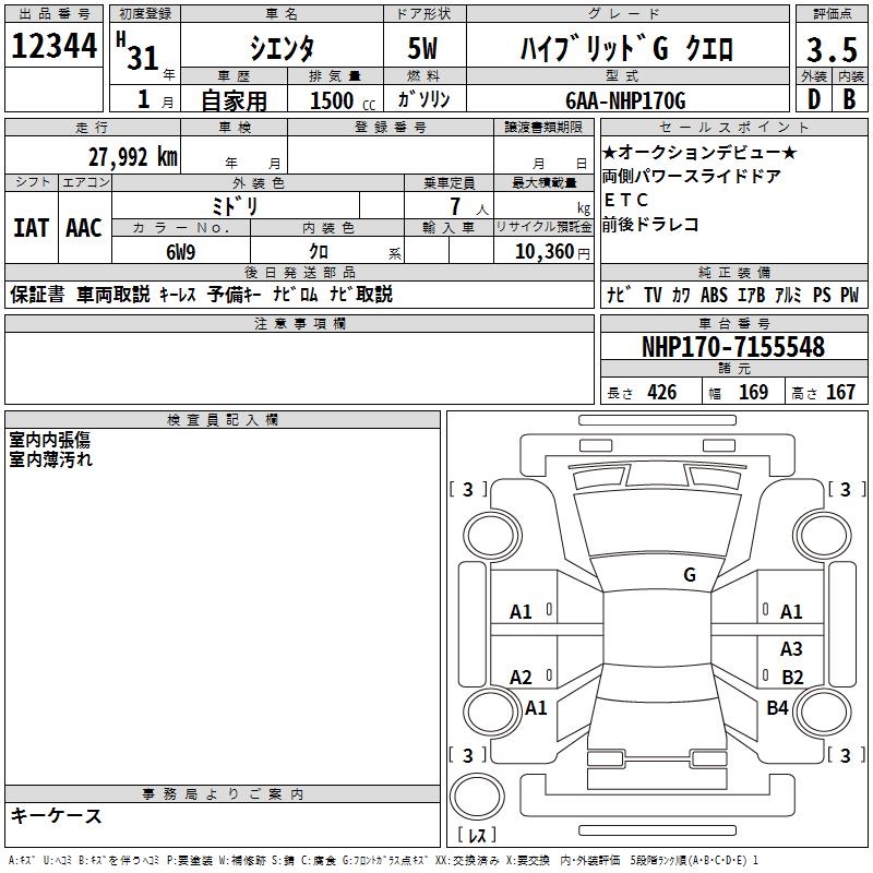 TOYOTA SIENTA HYBRID GKERO - лот 12344