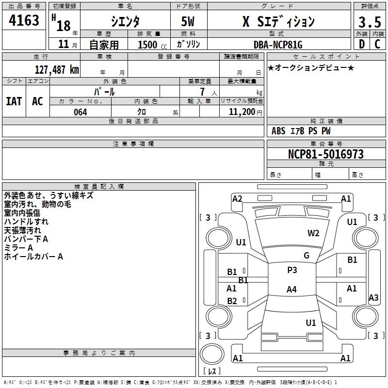TOYOTA SIENTA X S EDITION - лот 4163