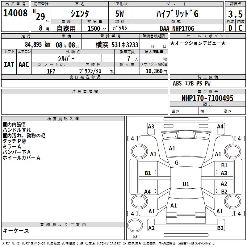 TOYOTA SIENTA HYBRID G - лот 14008