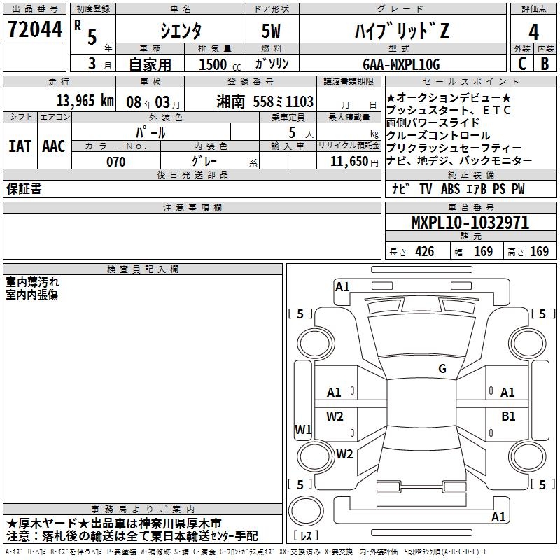 TOYOTA SIENTA HYBRID Z - лот 72044