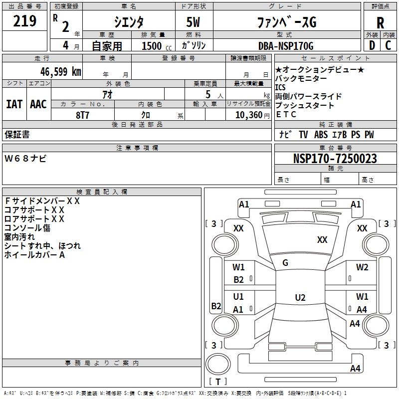 TOYOTA SIENTA FAN BASE G - лот 219