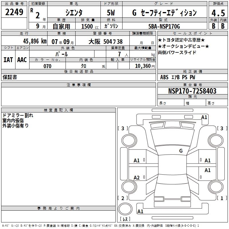 TOYOTA SIENTA G SAFETY - EDITION - лот 2249