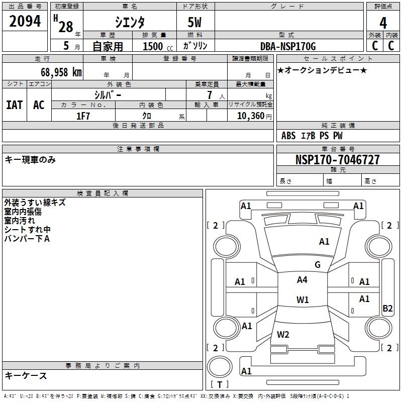 TOYOTA SIENTA - лот 2094