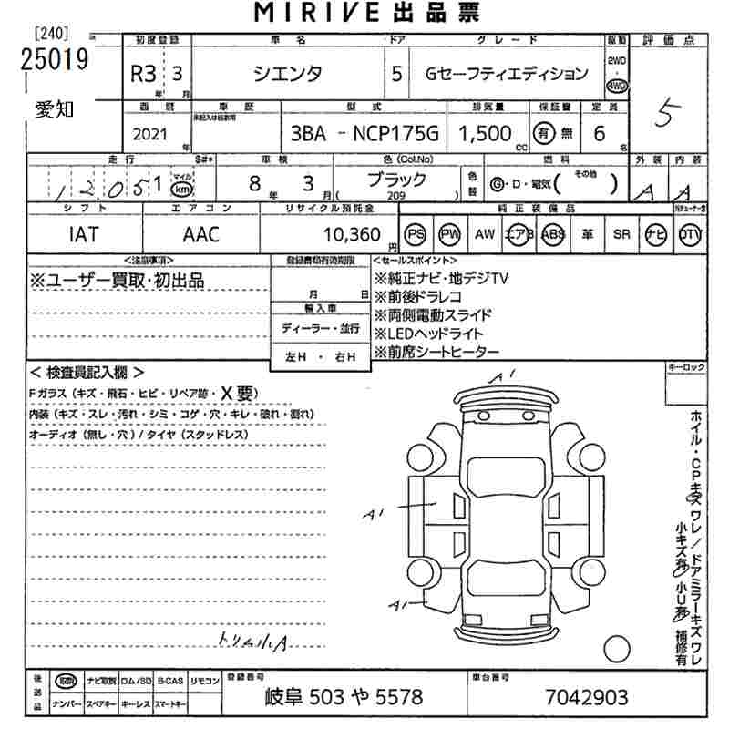 TOYOTA SIENTA G SAFETY EDITION - лот 25019