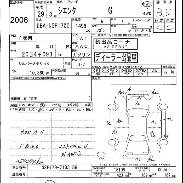 TOYOTA SIENTA G - лот 2006
