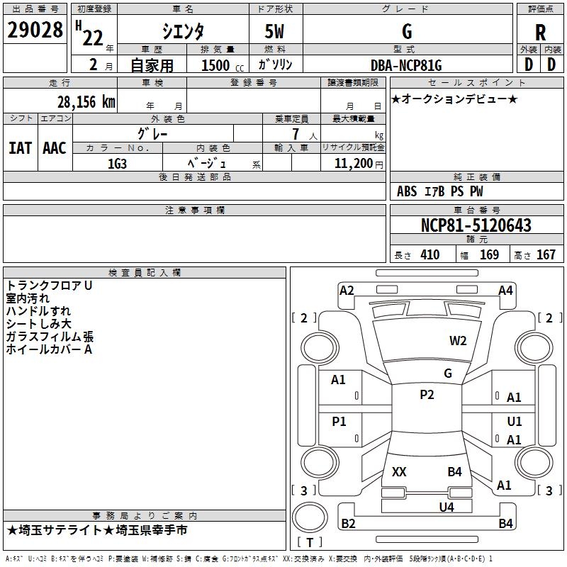 TOYOTA SIENTA G - лот 29028