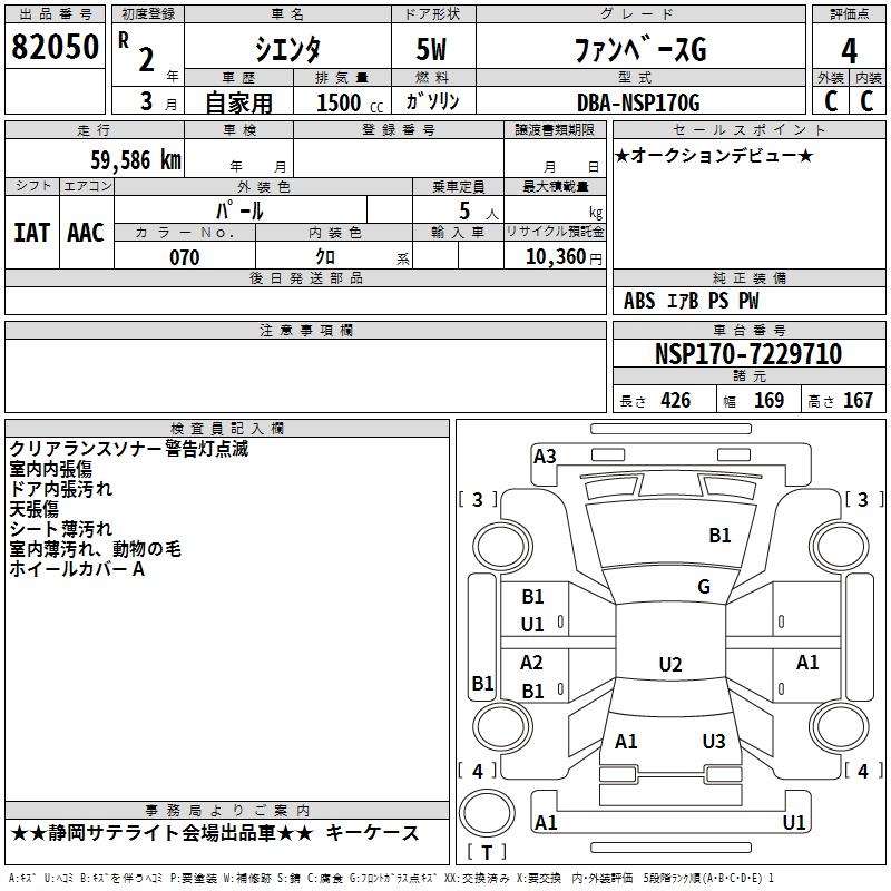 TOYOTA SIENTA FAN BASE G - лот 82050