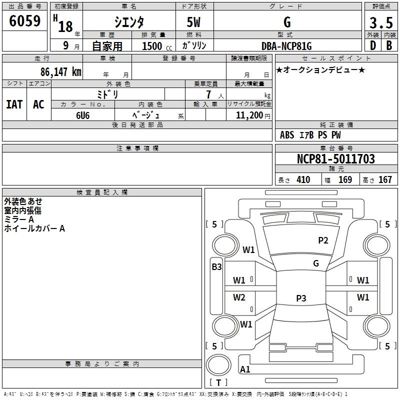 TOYOTA SIENTA G - лот 6059