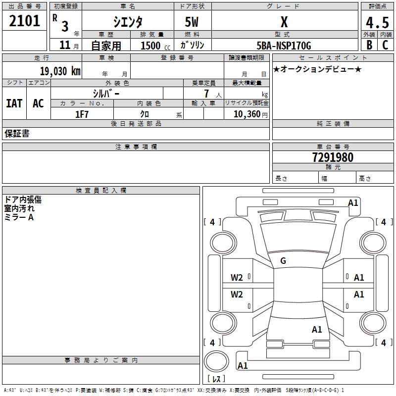 TOYOTA SIENTA X - лот 2101