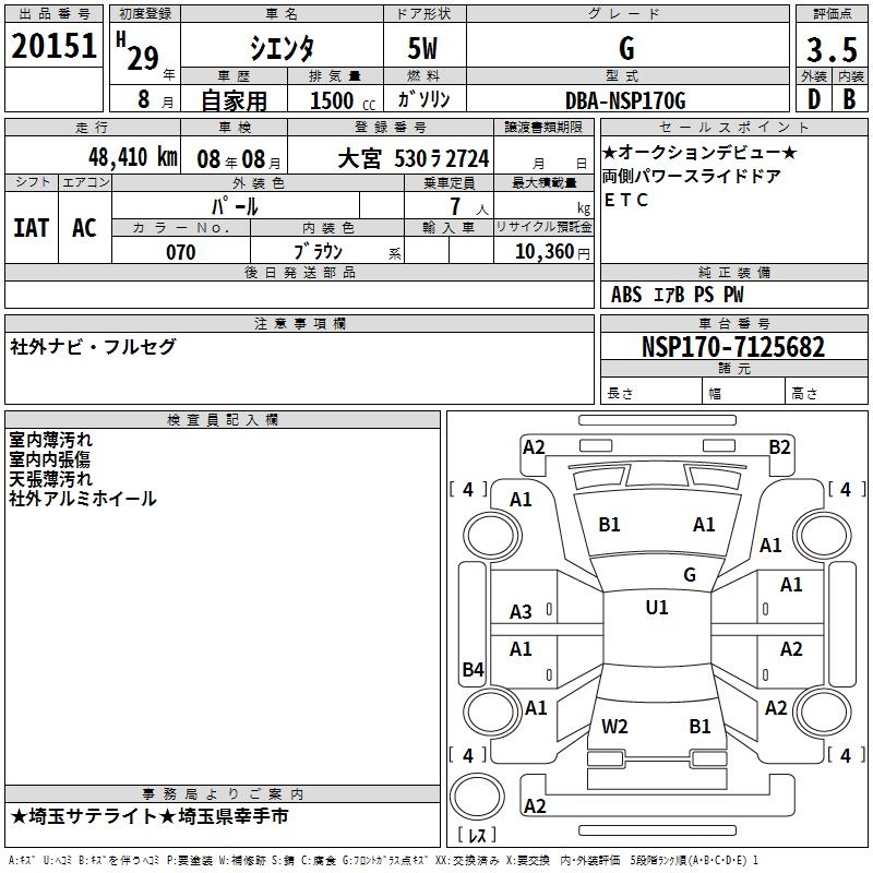 TOYOTA SIENTA G - лот 20151