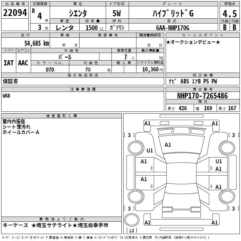 TOYOTA SIENTA HYBRID G - лот 22094