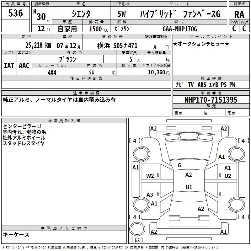 TOYOTA SIENTA HYBRID FAN BASE G - лот 536