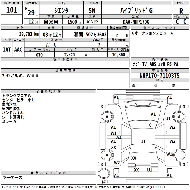 TOYOTA SIENTA HYBRID G - лот 101