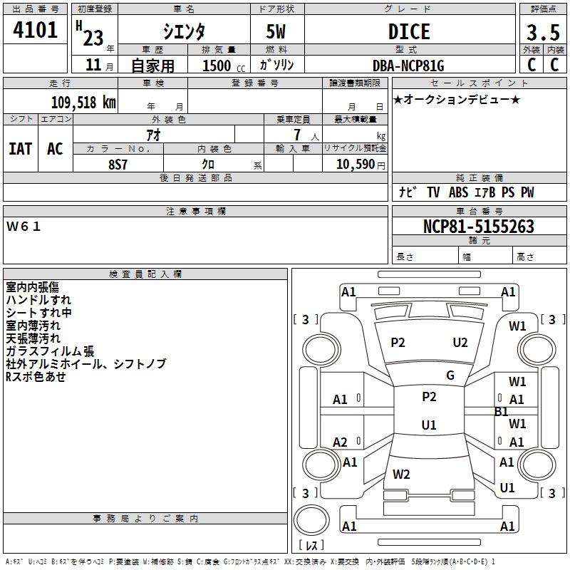TOYOTA SIENTA DICE - лот 4101