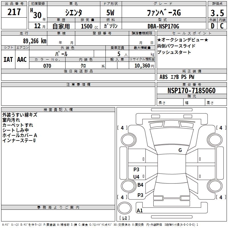 TOYOTA SIENTA FAN BASE G - лот 217