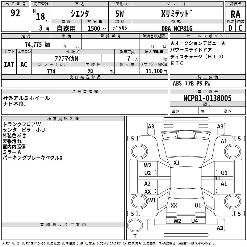 TOYOTA SIENTA X LIMITED - лот 92