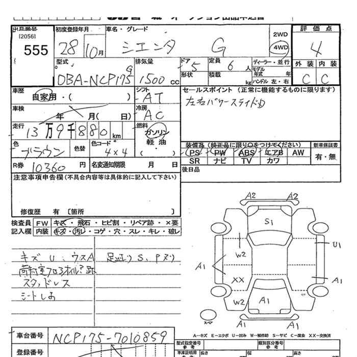 TOYOTA SIENTA 4WD G - лот 555