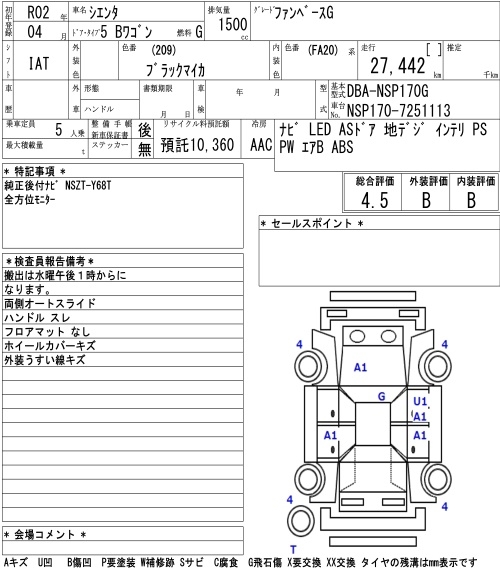 TOYOTA SIENTA FAN BASE G - лот 4402