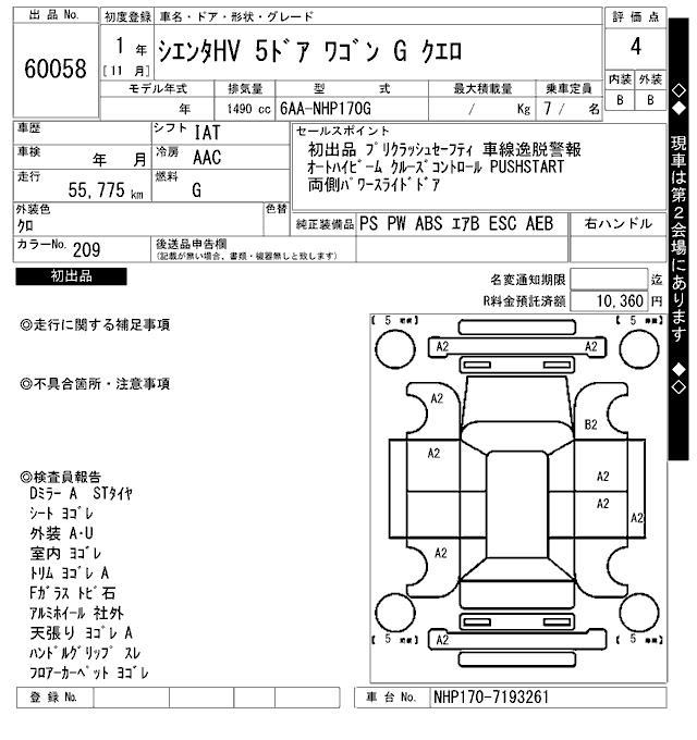 TOYOTA SIENTA GKERO - лот 60058