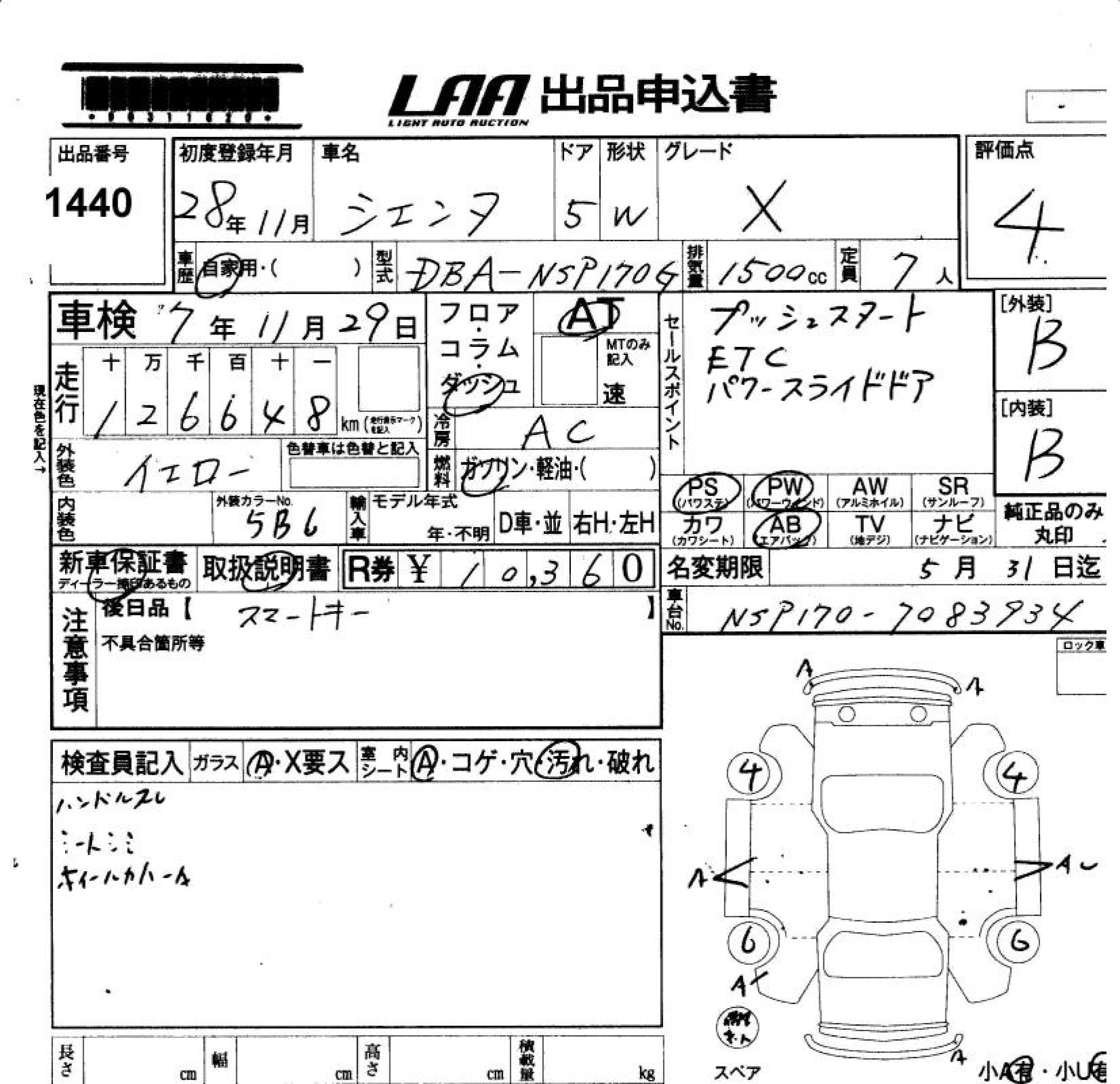 TOYOTA SIENTA X - лот 1440