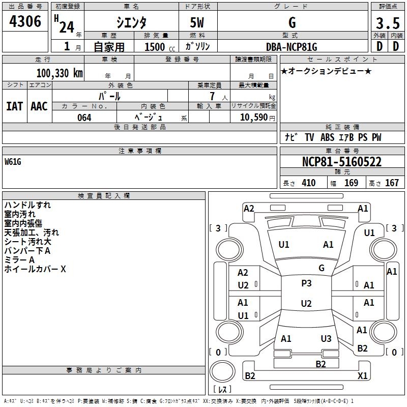 TOYOTA SIENTA G - лот 4306