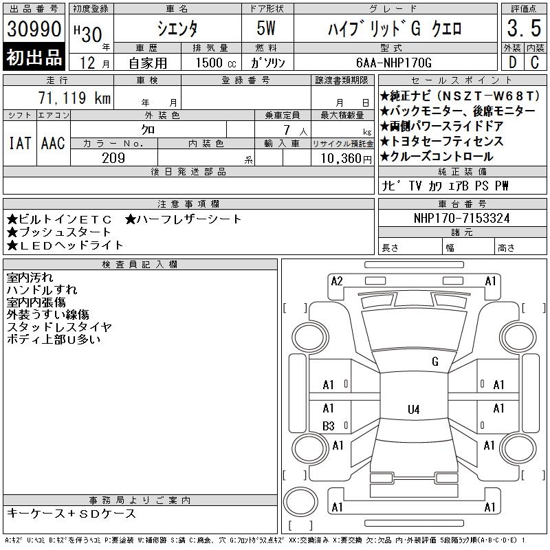 TOYOTA SIENTA HYBRID GKERO - лот 30990