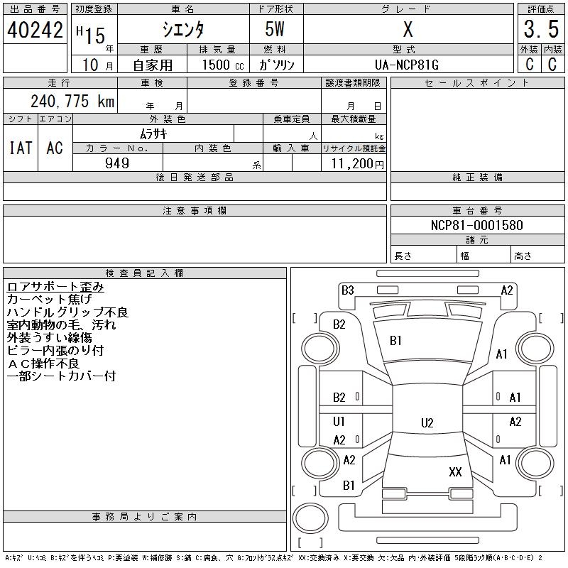 TOYOTA SIENTA X - лот 40242