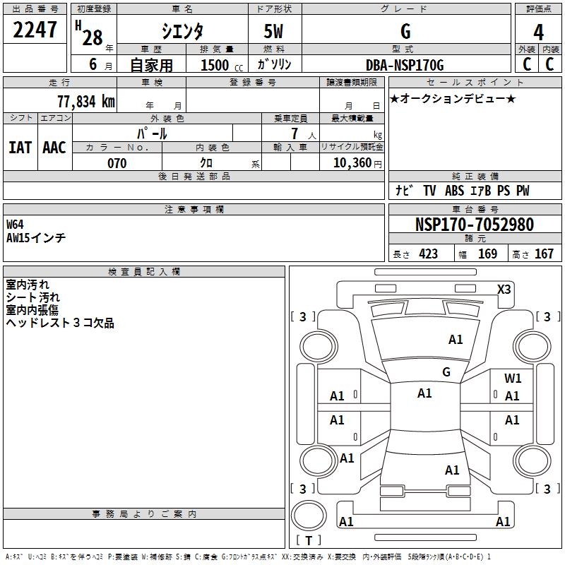 TOYOTA SIENTA G - лот 2247