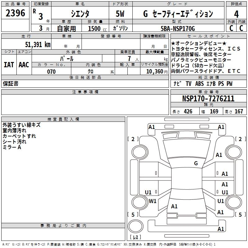 TOYOTA SIENTA G SAFETY - EDITION - лот 2396