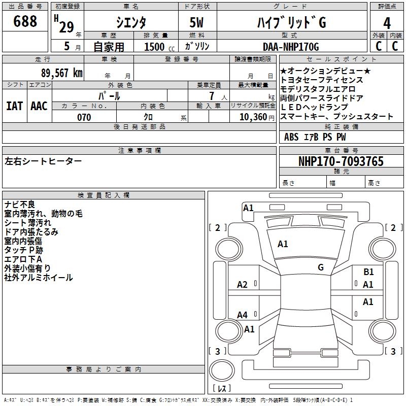 TOYOTA SIENTA HYBRID G - лот 688