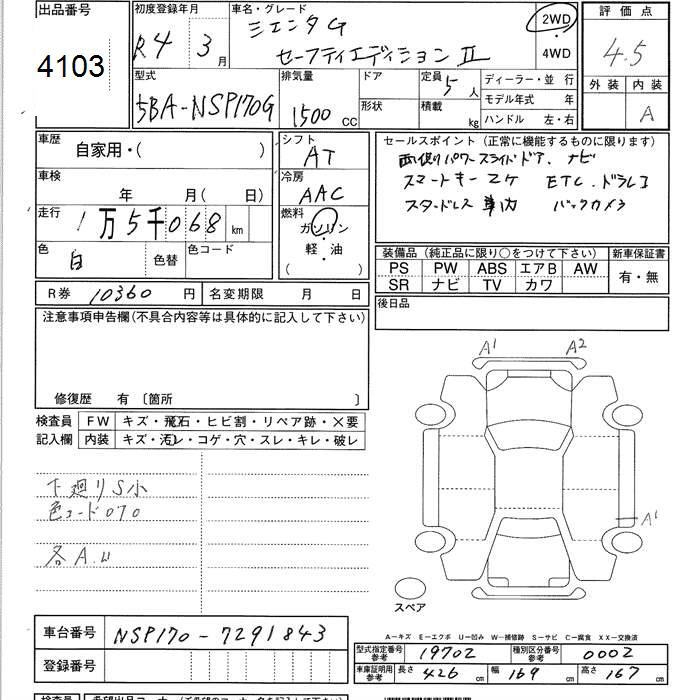 TOYOTA SIENTA G SAFETY EDITION II - лот 4103