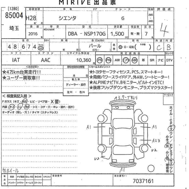 TOYOTA SIENTA G - лот 85004