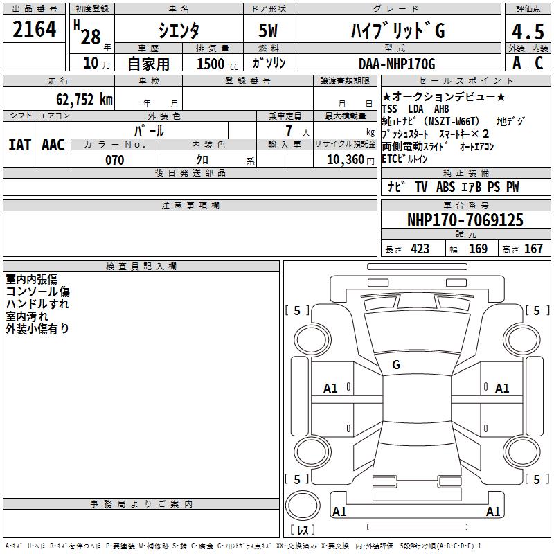 TOYOTA SIENTA HYBRID G - лот 2164