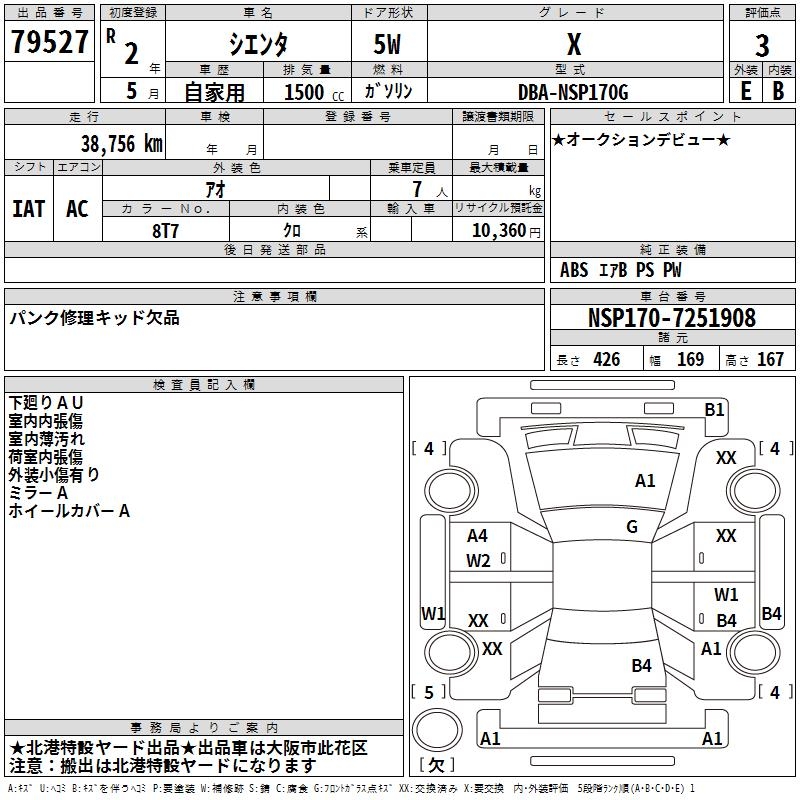 TOYOTA SIENTA X - лот 79527