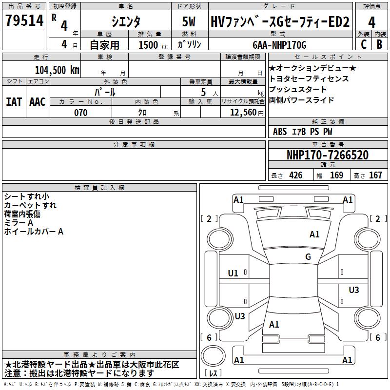 TOYOTA SIENTA HV FAN BASE G SAFETY -ED2 - лот 79514
