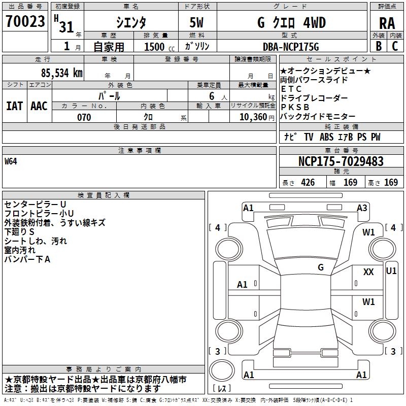 TOYOTA SIENTA GKERO4WD - лот 70023