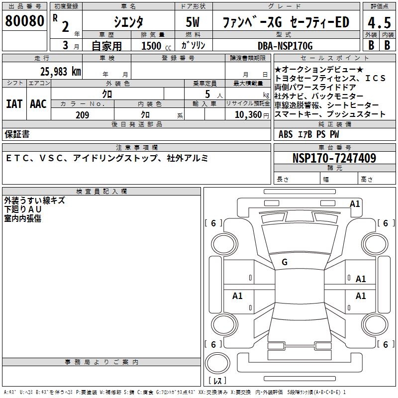 TOYOTA SIENTA FAN BASE G SAFETY -ED - лот 80080