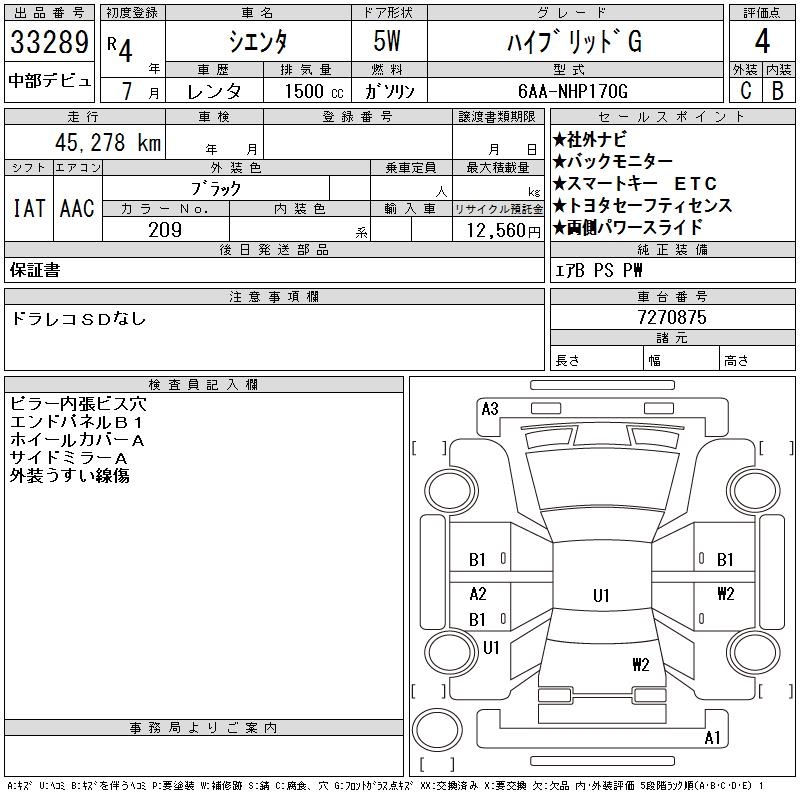 TOYOTA SIENTA HYBRID G - лот 33289