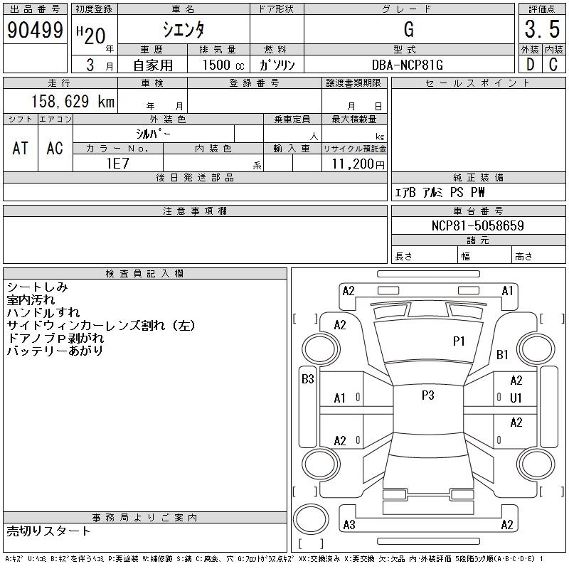 TOYOTA SIENTA G - лот 90499