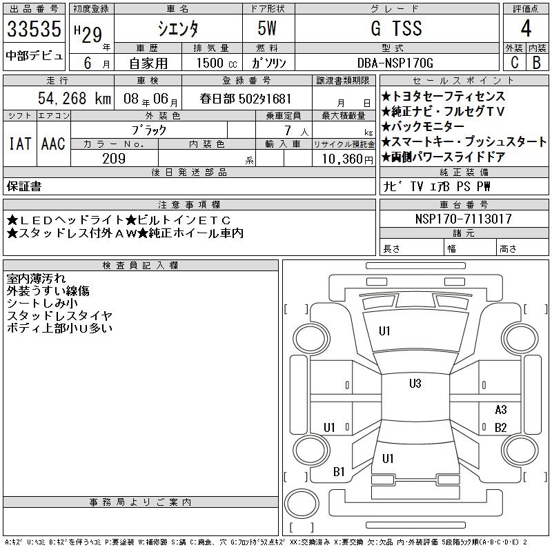 TOYOTA SIENTA G TSS - лот 33535
