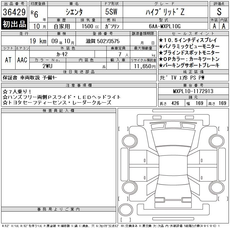 TOYOTA SIENTA HYBRID Z - лот 36429