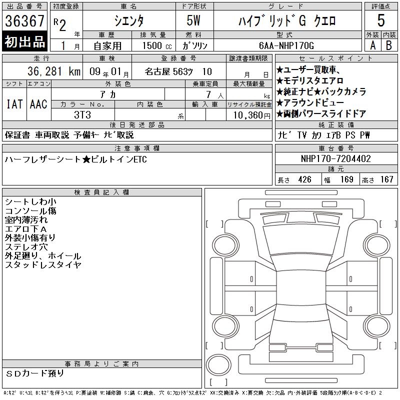 TOYOTA SIENTA HYBRID GKERO - лот 36367