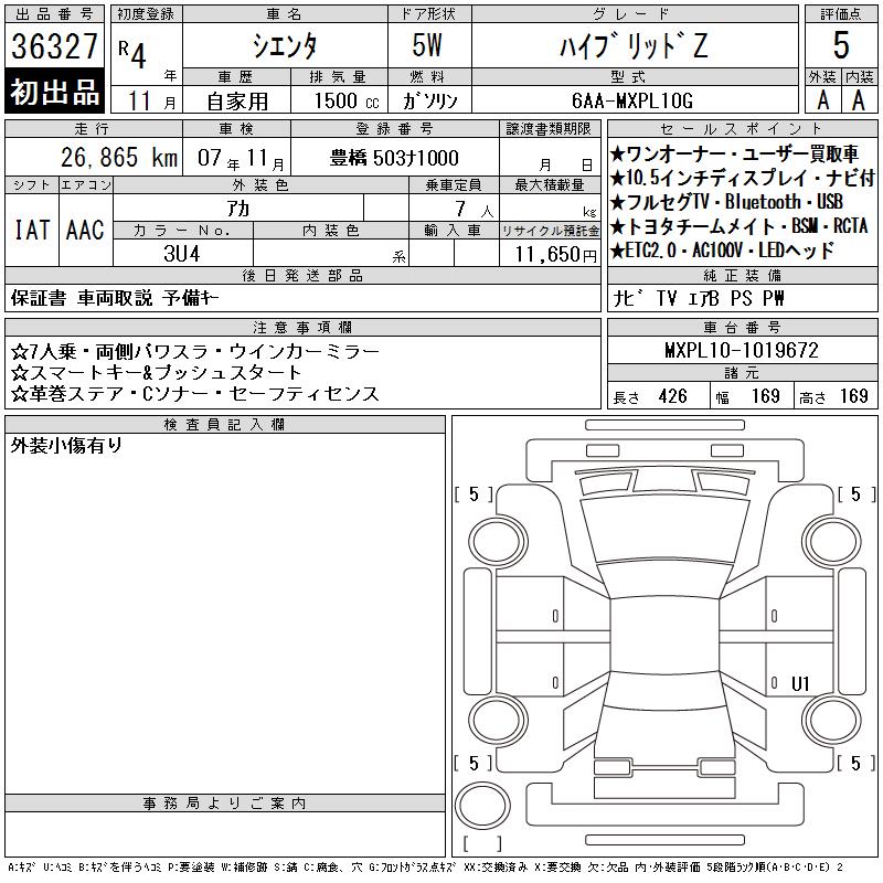 TOYOTA SIENTA HYBRID Z - лот 36327
