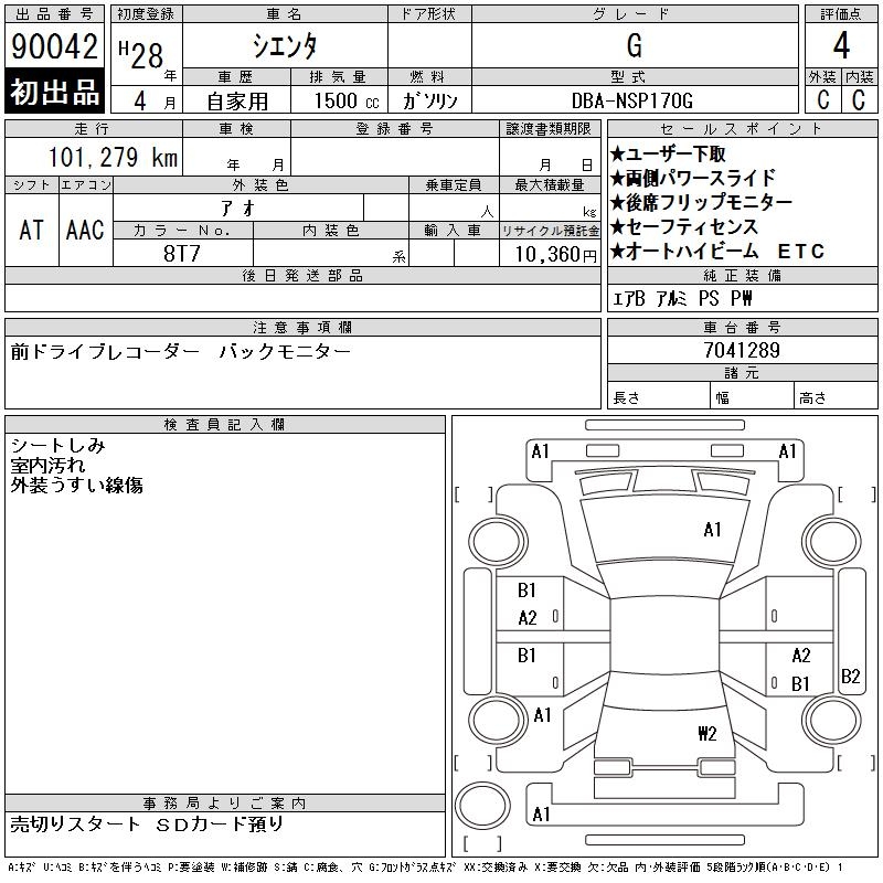 TOYOTA SIENTA G - лот 90042