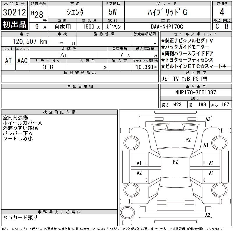 TOYOTA SIENTA HYBRID G - лот 30212